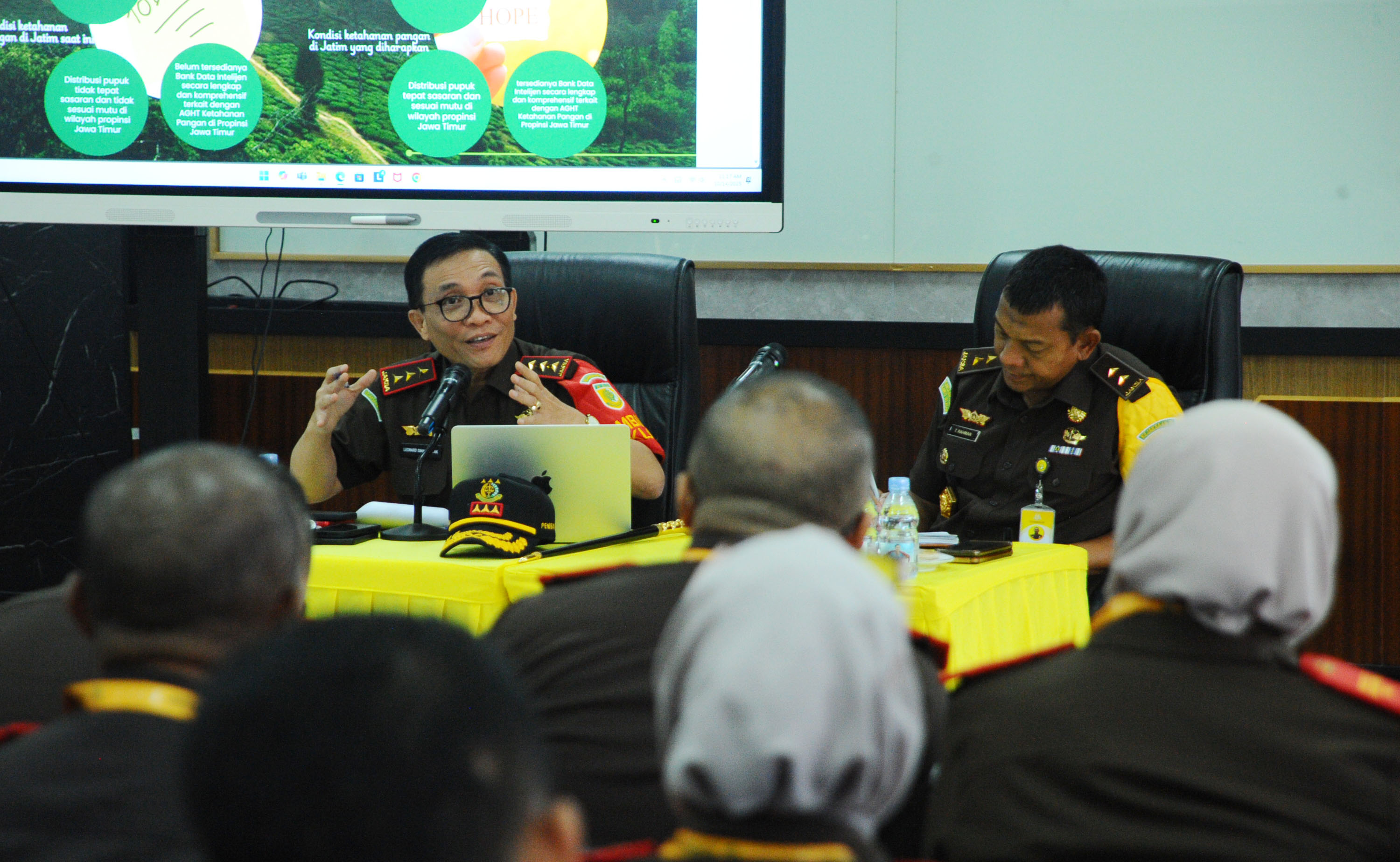 “Kita ingin membangun ekosistem ketahanan pangan melalui kolaborasi lintas sektor. Di dalamnya ada Kejaksaan, BPN, Dinas Pertanian, dan Bulog yang bekerja sesuai tugas dan fungsi masing-masing — mulai dari pendataan lahan, pengawasan distribusi pangan, hingga penyediaan cadangan pangan nasional,” tegas Leonard.